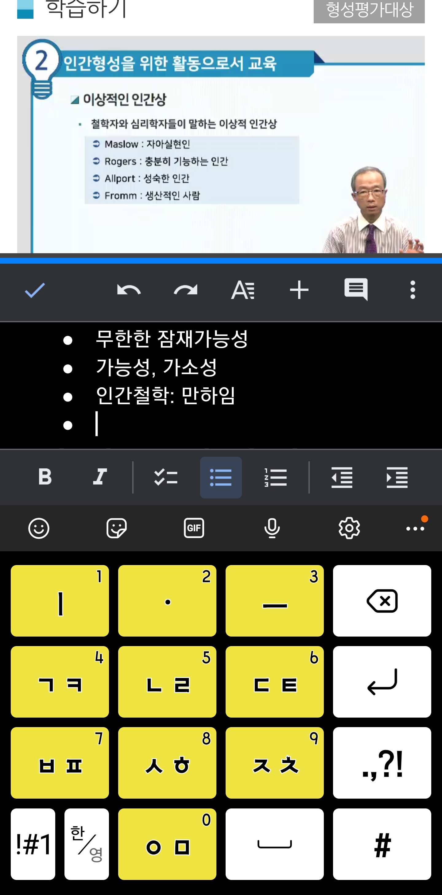 이렇게 메모를 하면서 교수님의 강의를 청취한다.