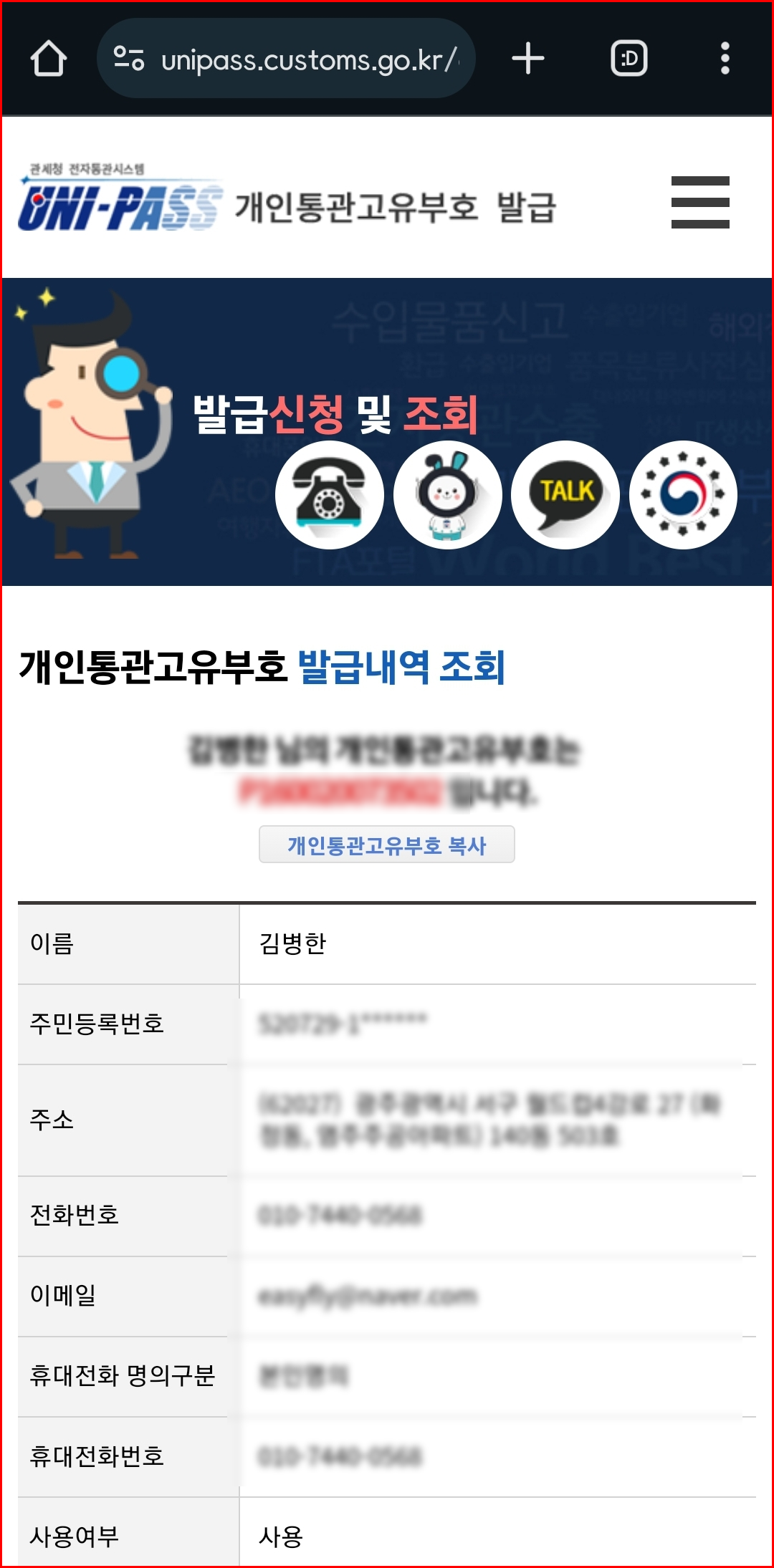 - 대한민국 관세청 홈페이지 또는 모바일 앱에서 발급받을 수 있습니다. 온라인 신청 시 신분증 정보를 입력해야 하며, 발급은 바로 이루어집니다.