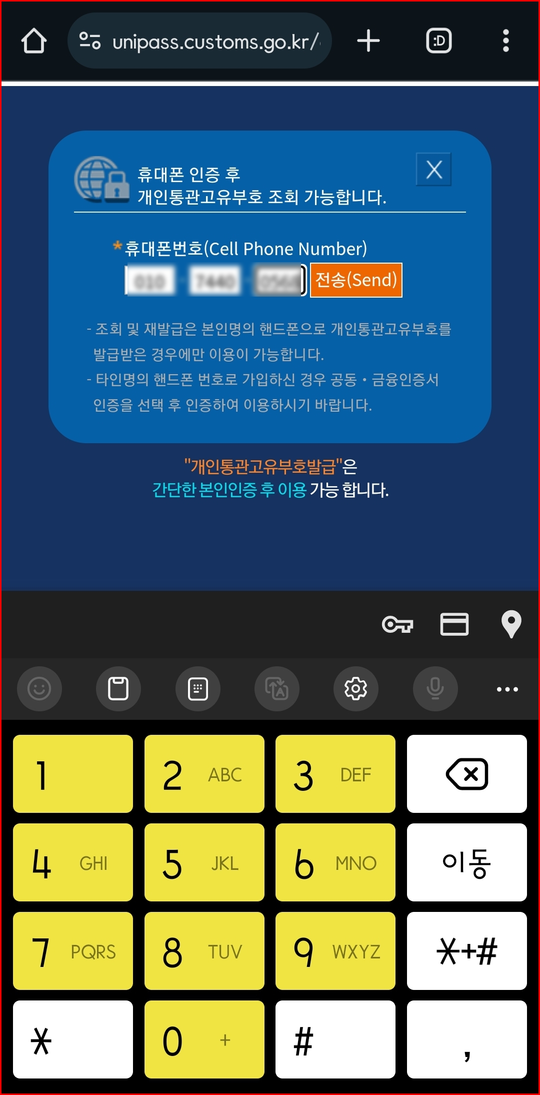 이 과정을 통해 개인통관고유부호를 발급받을 수 있습니다. 본인 인증과 개인 정보 입력에 주의가 필요합니다. 이 부호를 통해 해외에서 구매한 물품의 통관 절차가 빠르고 원활하게 이루어집니다.