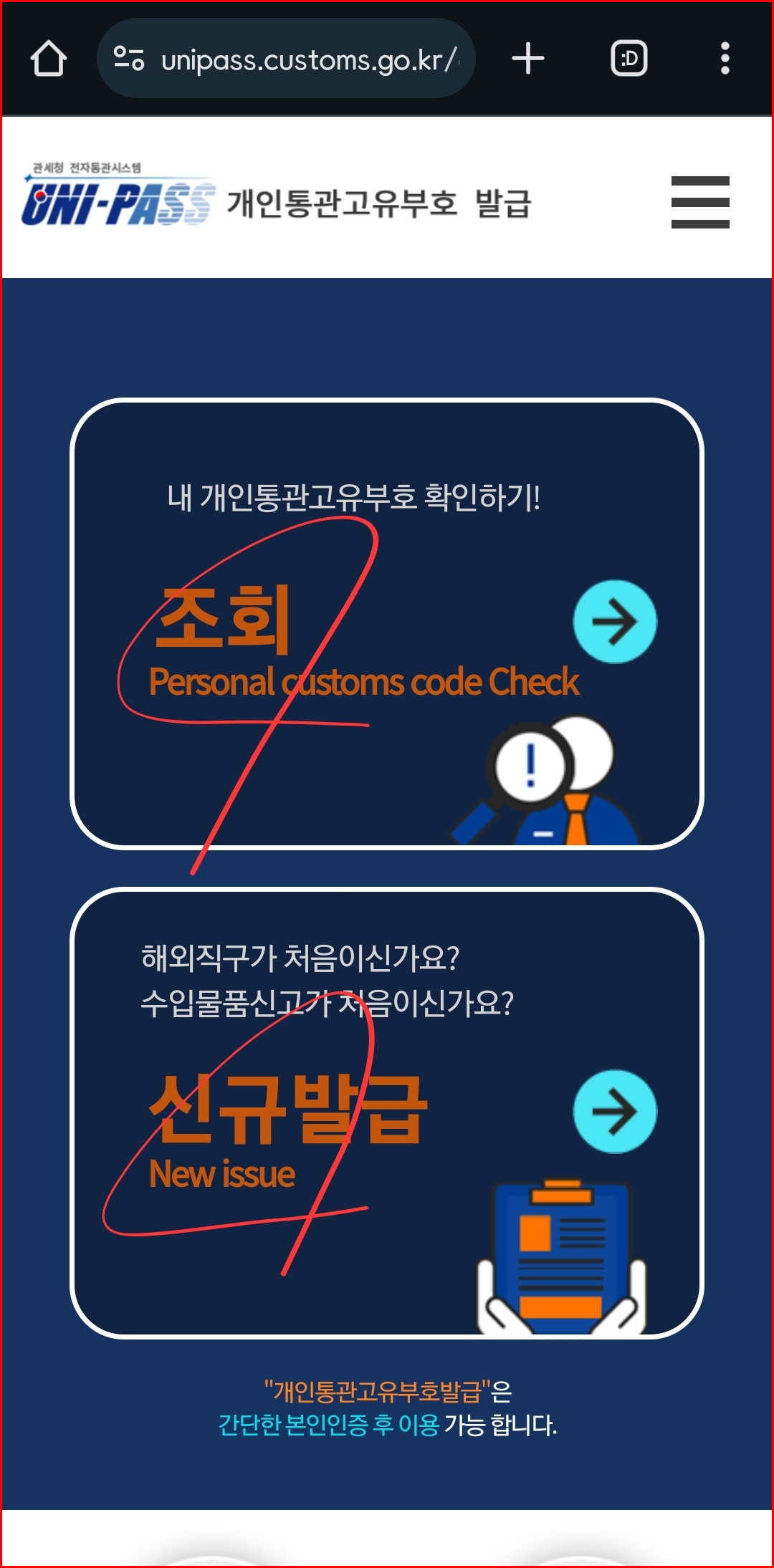 - 개인통관고유부호 발급 메뉴 이동