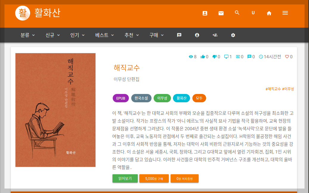 사업자 등록 없이 출판사 등록만 한 경우는 이러한 플랫폼을 이용해서 유통을 하는 것이 무방합니다. '활화산'이라는 출판사를 등록한 제가 사업자 등록 없이 책을 유통할 수 있어 많은 짐을 벗을 수 있었습니다.