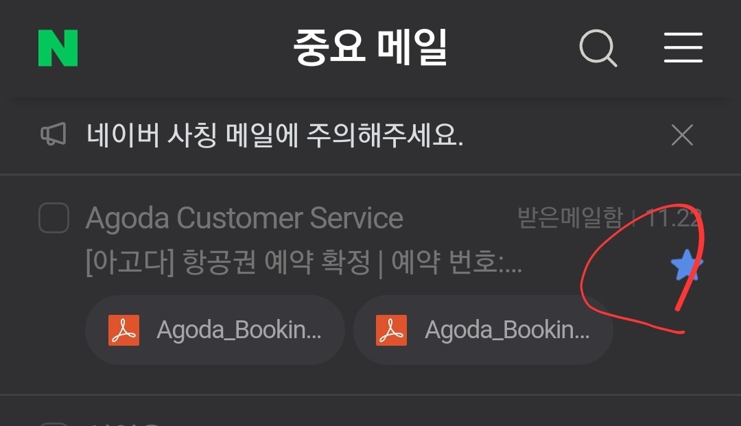 메일 중 중요 메일로 별 체크를 해뒀더니 쉽게 노출되군요.