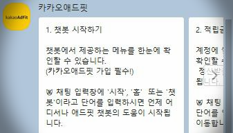 티스토리에 카카오애드핏을 연결한 것도 보름이 지났습니다. 크게 기대할 여건은 아닙니다만 아무래도 관심이 갑니다. 그래서 카카오애드핏을 채널로 등록하고 카카오애드핏 챗봇과의 대화를 캡쳐했습니다.