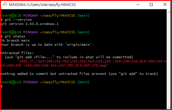 git status: 변경된 파일 및 스테이징 상태를 확인합니다. 이 명령어는 현재 작업 중인 파일의 상태를 보여줍니다.