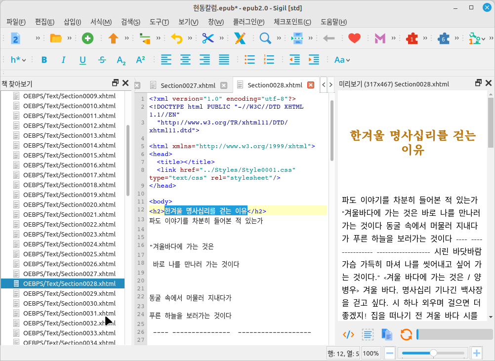 텍스트로 작성된 소스를 시길로 불러들여 편집하는 과정을 소상하게 설명했습니다. 물론 편집 스타일을 적용하는 것은 개별적으로 다릅니다. 여기서는 '현동칼럼'에 적용하는 스타일을 어떻게 적용하는 것이 효과적인 방법인가를 소개했습니다. 이 방법을 익히면 유사한 전자책 제작에 요긴하게 활용할 수 있을 것입니다.