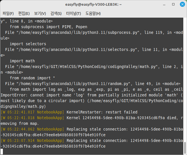 주피터 노트북에서 에러 발생