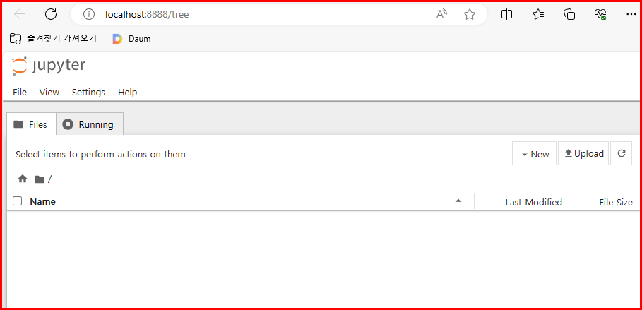 jupyter notebook명령어를 실행합니다. - 이렇게 하면 Jupyter Notebook이 현재 폴더를 기본 작업 공간으로 사용합니다.