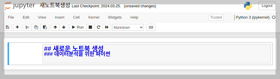 | [파이썬과 데이터분석] 주피터 노트북(Jupyter Notebook) (44) | 2024.04.07 |