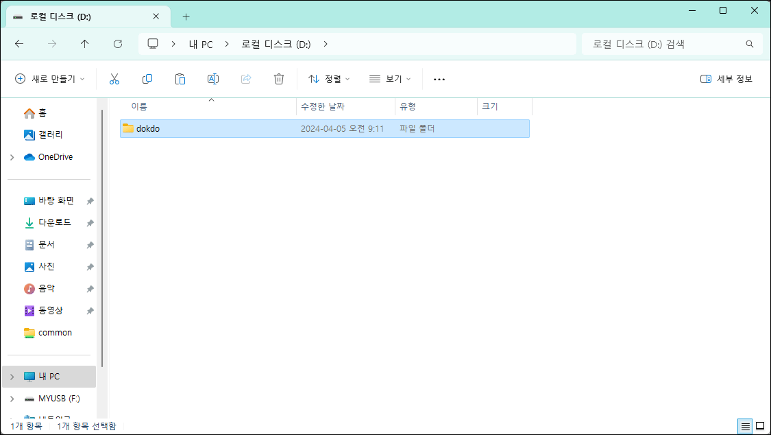 dokdo폴더를 마우스 오른쪽 버튼으로 클릭하세요. - 나타난 메뉴에서 '속성'을 선택하세요.