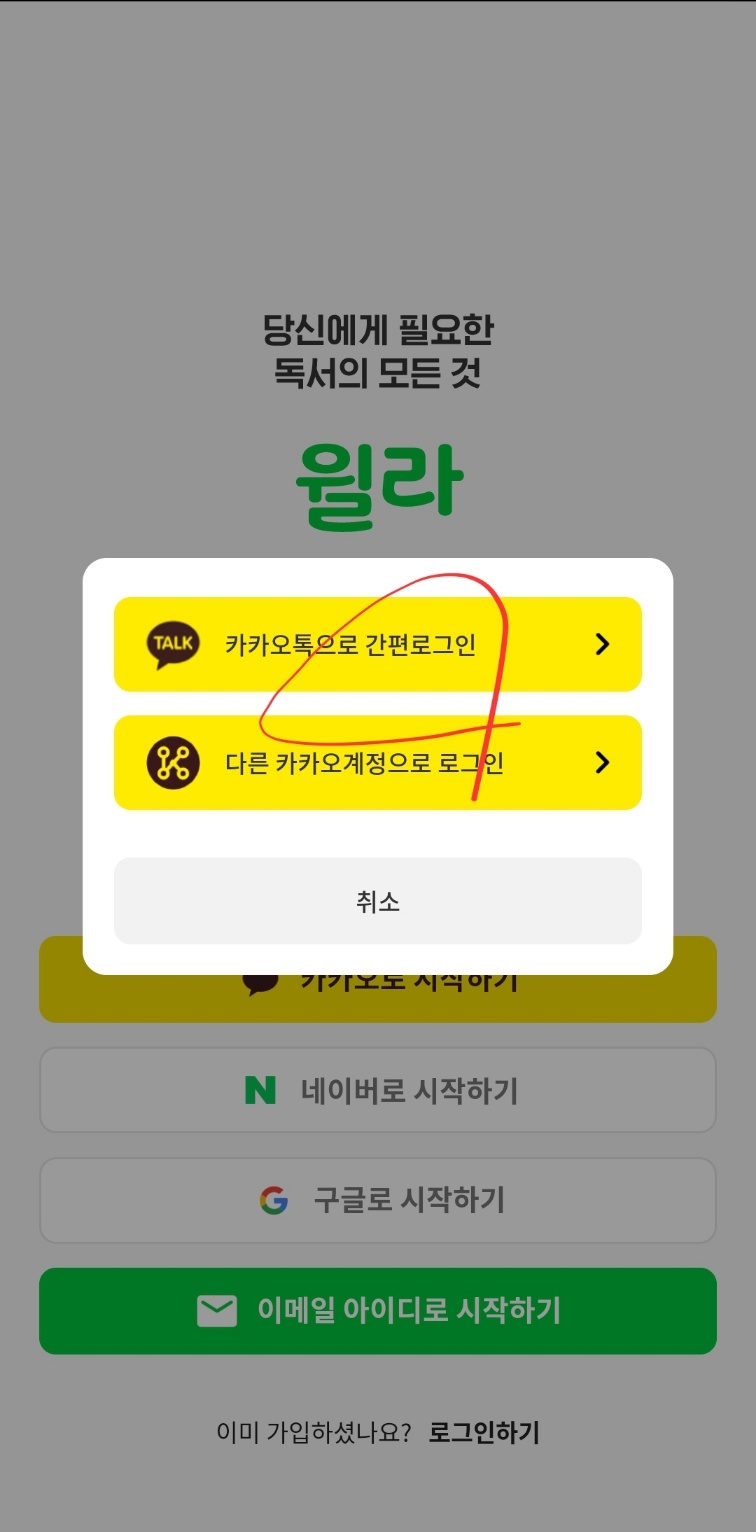 윌라는 전자책과 오디오북을 서비스하는 플랫폼입니다. 설치하면 유료 회원을 권합니다만 무시하고 진행하면 무료 전자책 이용이 가능합니다.