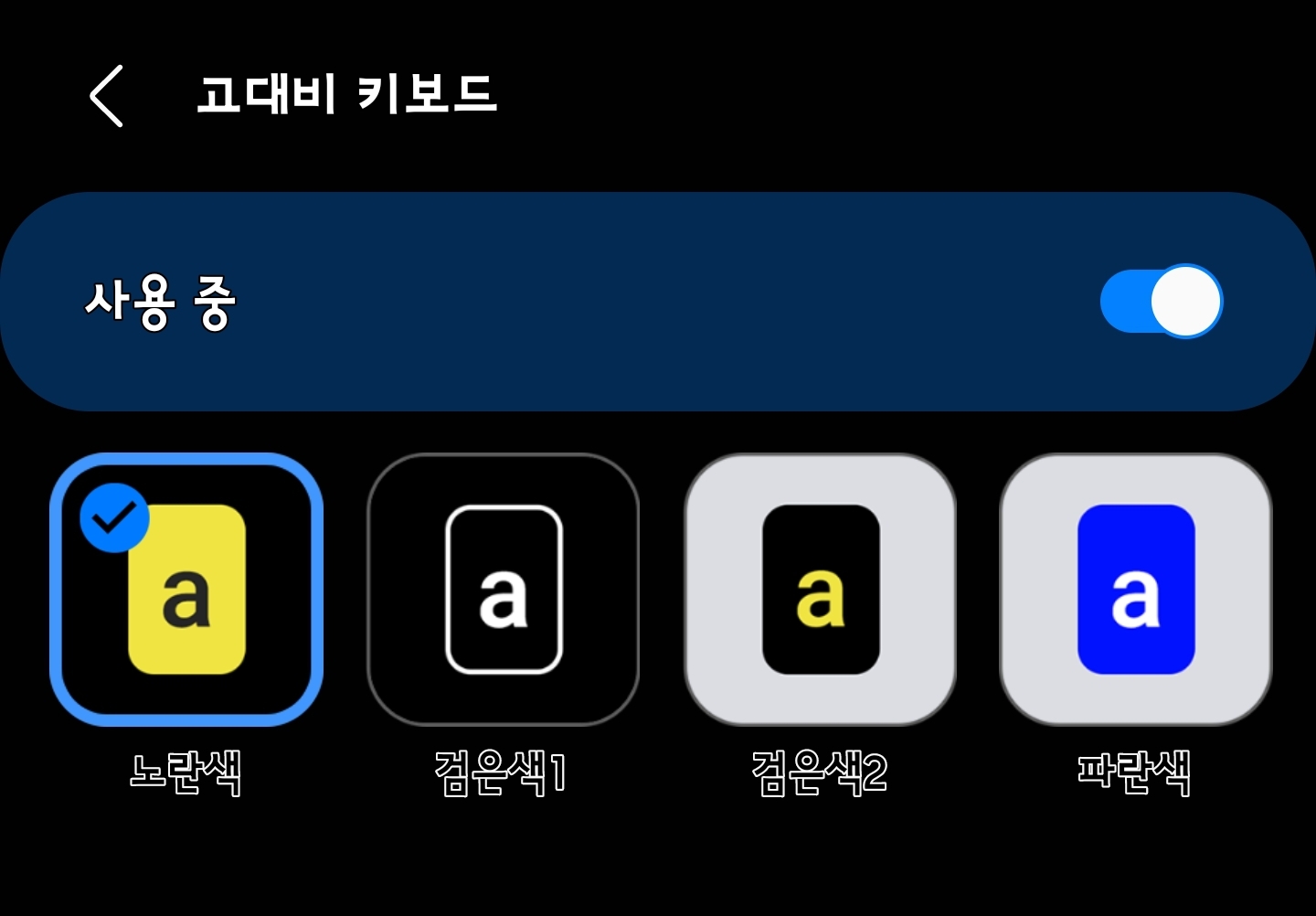 고대비 색은 롱택을 통해(길게 누르는 것) 옵션창을 열 수 있어요.