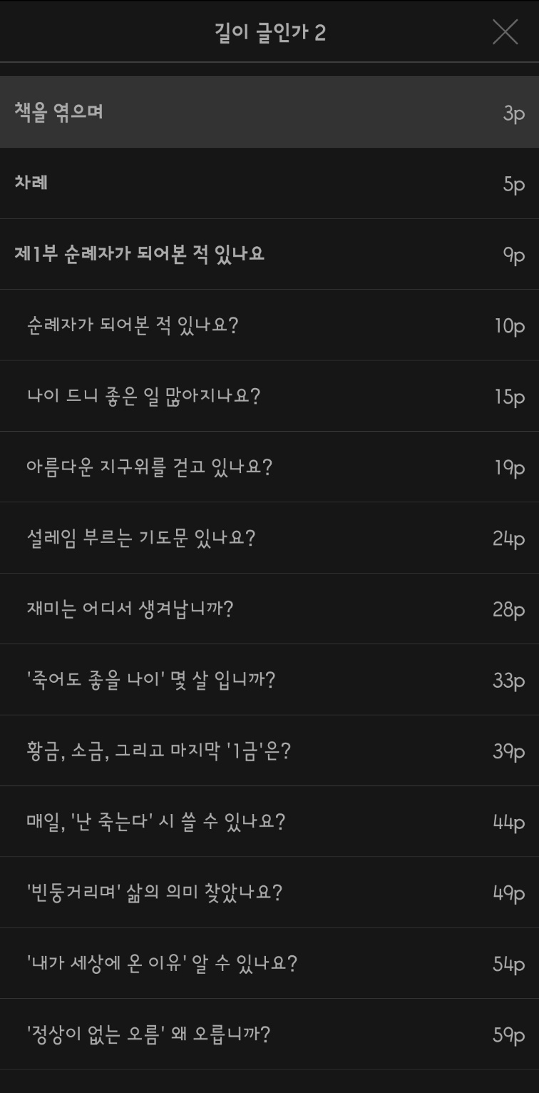 뷰어에서 차례를 열었습니다. '아차!' 싶었습니다. 누구도 모르게 펼쳤다는 내 음모(?)가 이리 쉽게 들통날 줄을.