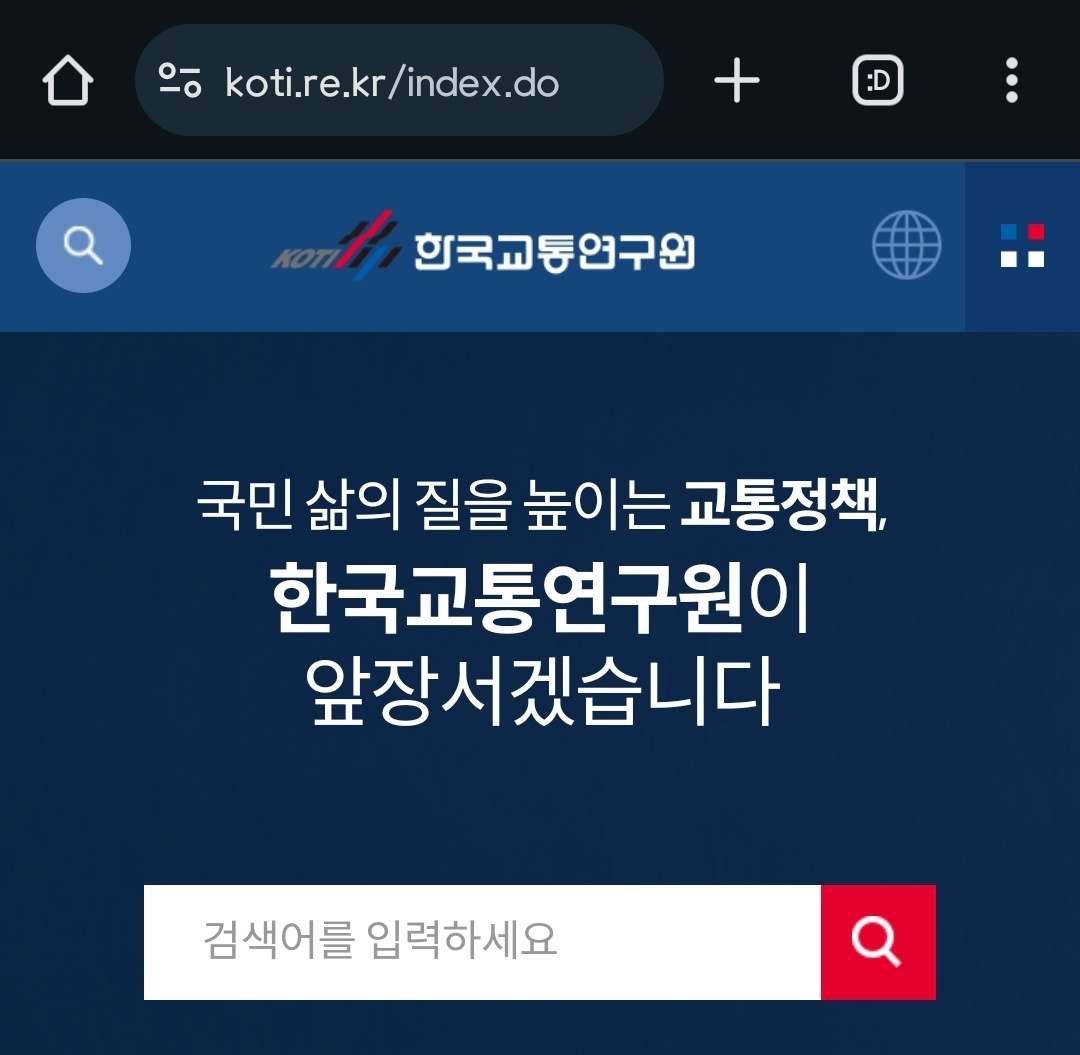 1. 홈페이지 접속: [한국교통연구원 홈페이지](http://www.koti.re.kr)로 이동합니다.