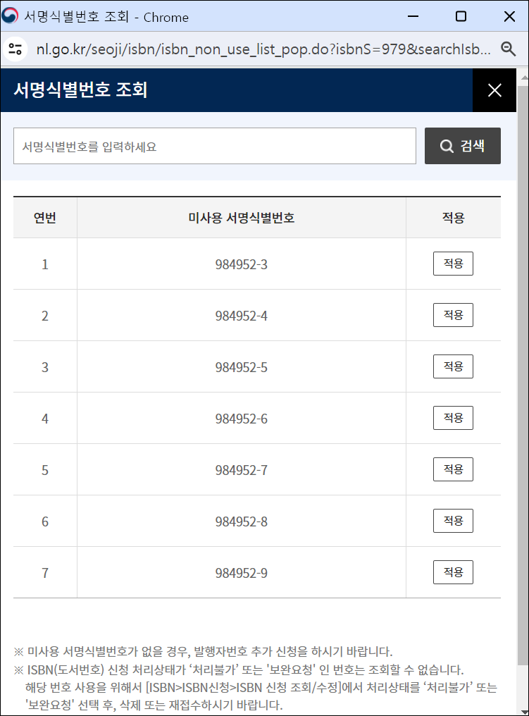 국립중앙도서관에 ISBN 발급 신청