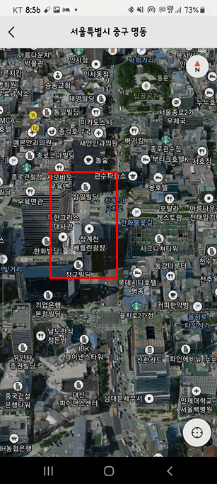 실감나지 않습니까? 서울의 거리. 그 유명했던 삼일빌딩을 찾고 그 근처에 있는 목표 지점을 찾는 것은 훨씬 쉬울 것으로 사료됩니다.