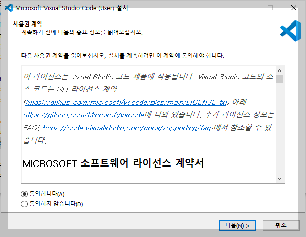 이어 설치하는 프로그램은 마이크로소프트가 야심차게 서비스하는 코딩 편집기 '비주얼스튜디오코드'이다. 파이썬으로 프로그램을 하든 자바스크립트인 NodeJS로 프로그램을 하든 도움이 되는 편집기이다.
