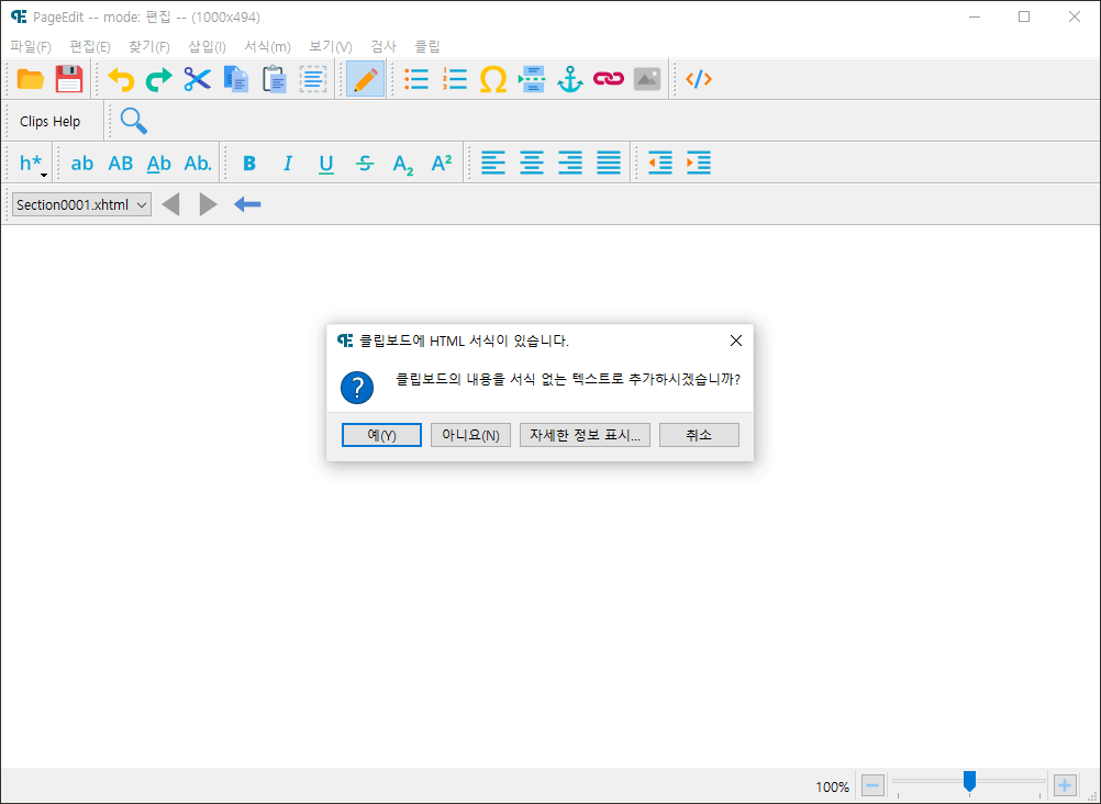 - 텍스트 입력: 텍스트 편집기 창에 원하는 내용을 입력합니다.