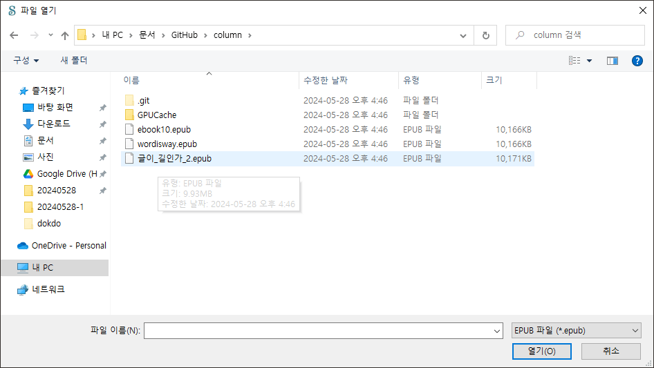 - 기존 파일 열기: ‘파일’ 메뉴에서 ‘열기’를 선택하여 기존 EPUB 파일을 엽니다.