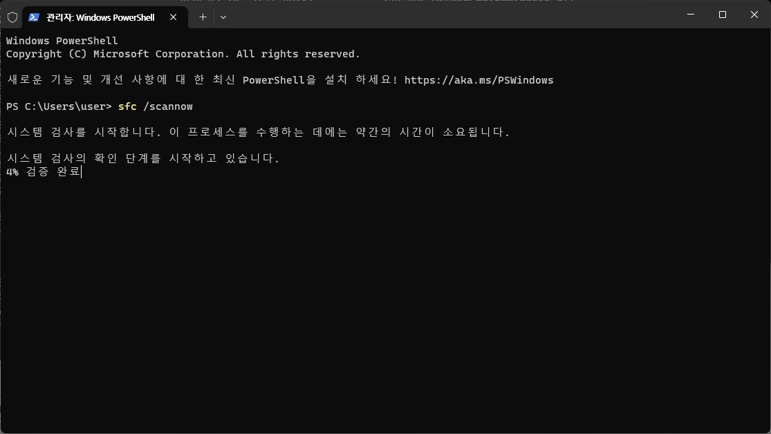 시스템 파일에 문제가 있는지 확인하고, 손상된 파일을 복구합니다.