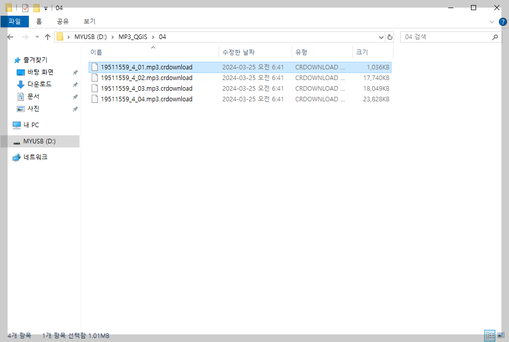 .crdownload파일이 계속 다운로드되기 시작하고, 완료되면 정상 파일로 변환됩니다.
