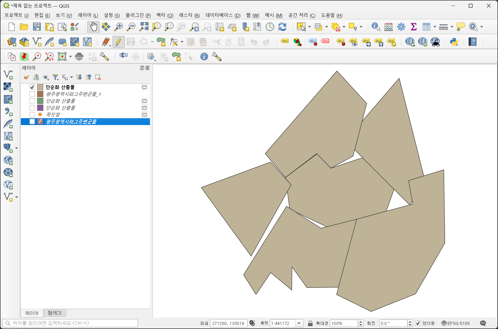 - 복잡한 도형 선택: 단순화할 복잡한 폴리곤을 선택합니다.