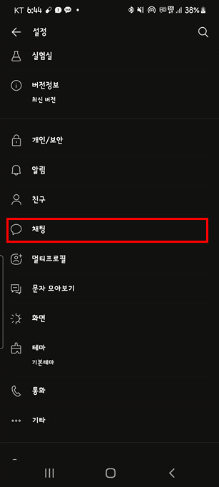 채팅한 대화를 백업하는 것은 우선 카카오톡 설정에서 [전체설정]을 선택합니다. 여기에는 많은 항목들이 있는데 이중 [채팅]을 선택하세요. 채팅 항목에는 [대화 백업]과 [대화/미디어 백업하기]가 있습니다.