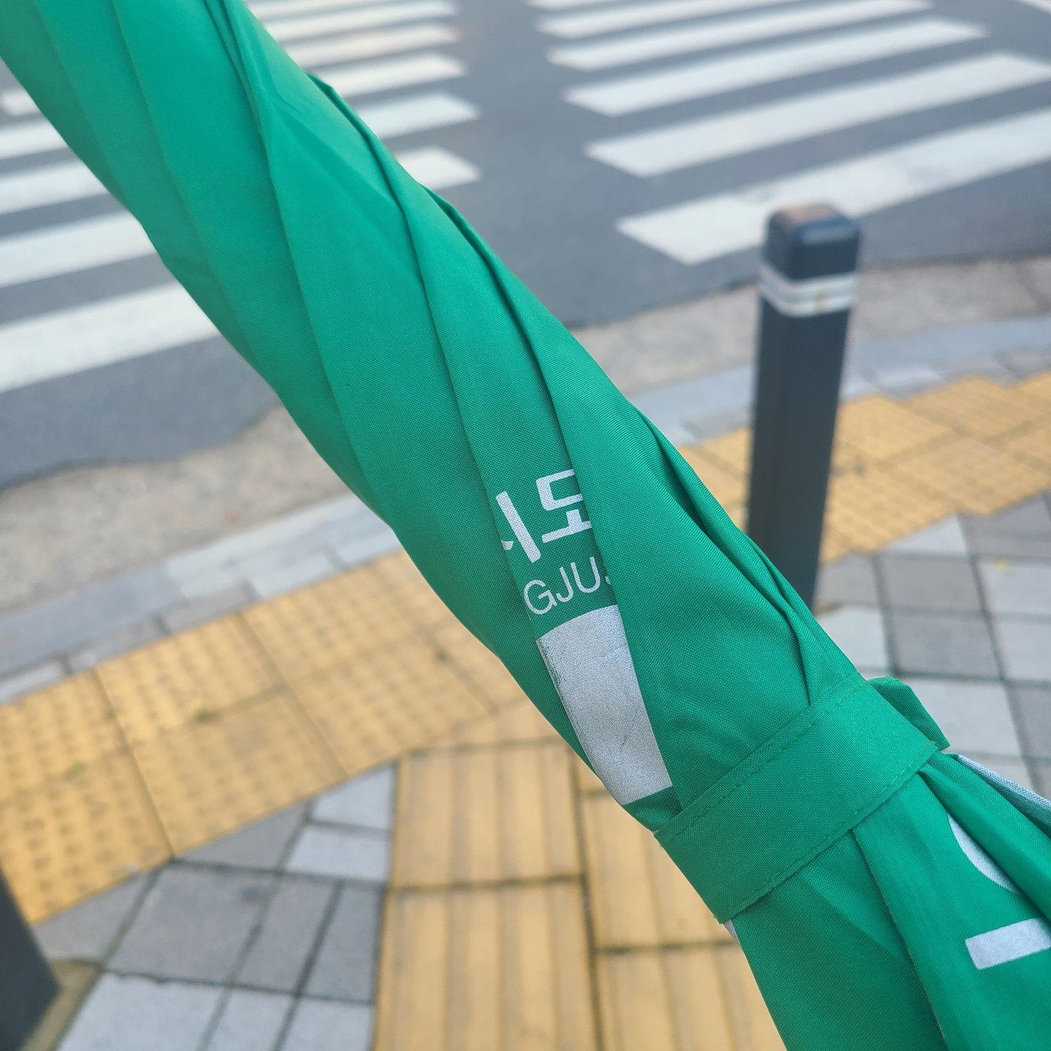 눈에 확 띄는 초록 우산입니다. 연락처만 남기고 빌린 우산은 '정겨운 퇴근길'을 만듭니다. '쌍촌역'에서 내려 빵이 큰 우산을 내돌리면서 즐겁게 왔습니다.