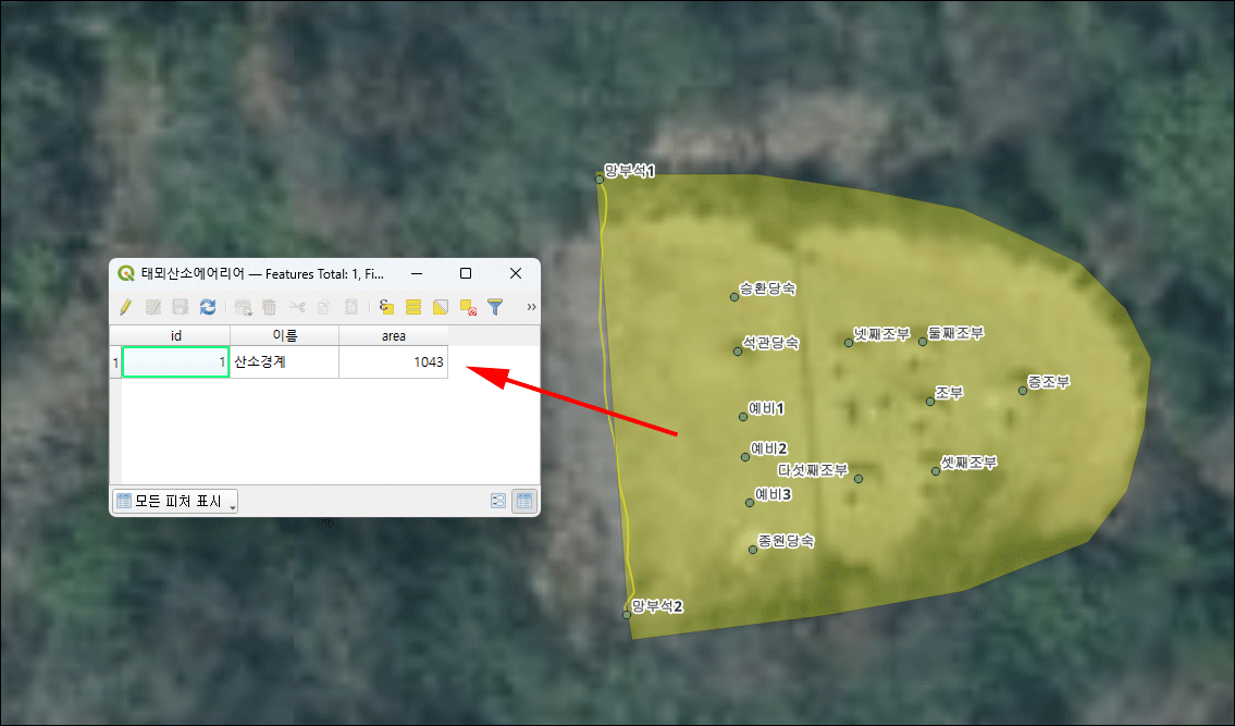 차별화된 벌초 대행 사업을 추진하는 과정에서 실험 대상을 QGIS로 데이터 처리를 했습니다. 벌초비로는 40만 원. 산소의 면적은 1,043제곱미터(QGIS에서 계산한 결과)였습니다.