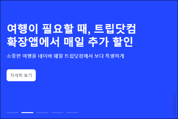 웨일 브라우저의 트립닷컴 확장앱은 여행 관련 예약 시 특별한 추가 할인을 제공하는 기능입니다. 이 확장앱을 사용하면 네이버 웨일 브라우저를 통해 트립닷컴을 이용할 때 추가적인 할인 혜택을 받을 수 있습니다.