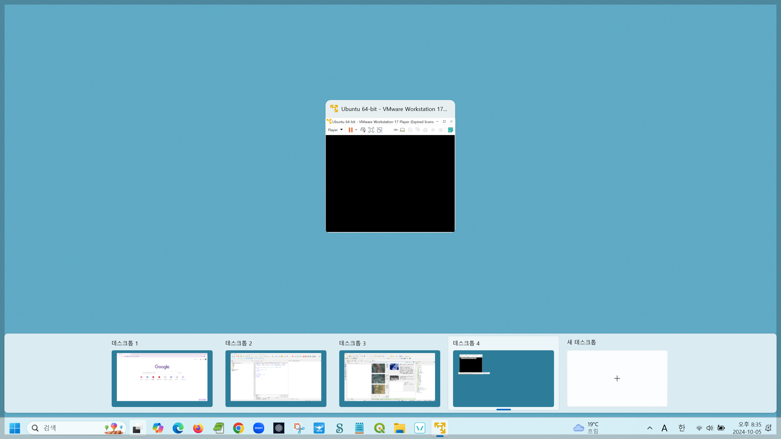 Windows 키 + Tab을 누른 후, 화면 상단의 "새 데스크톱" 버튼을 클릭하면 새로운 가상 데스크톱을 만들 수 있습니다.