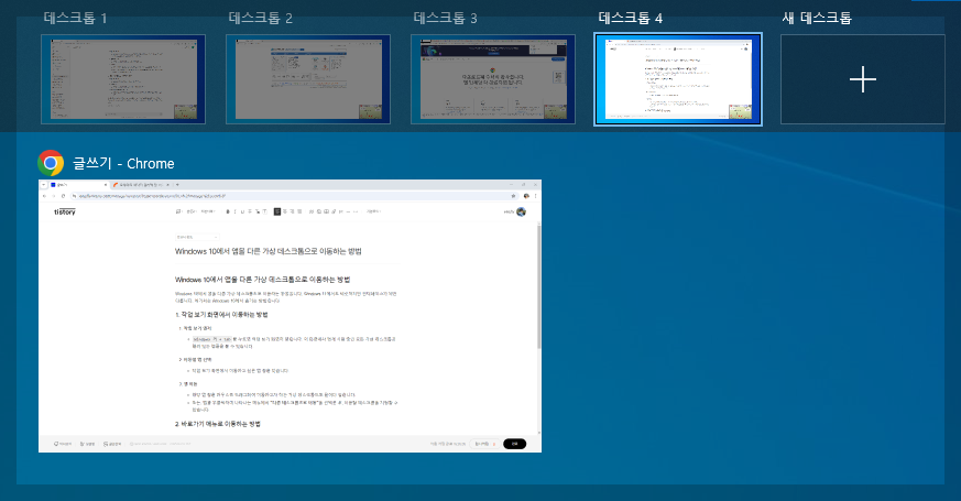 - 해당 앱 창을 마우스로 드래그하여 이동하고자 하는 가상 데스크톱으로 끌어다 놓습니다.