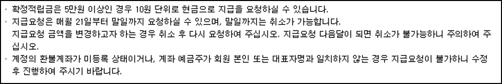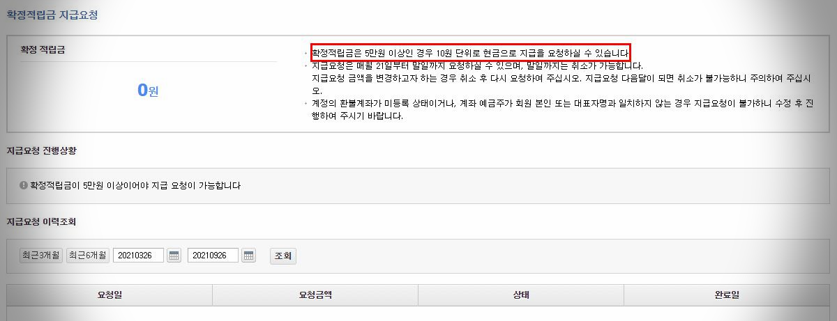 - 확정적립금은 5만원 이상인 경우 10원 단위로 지급
