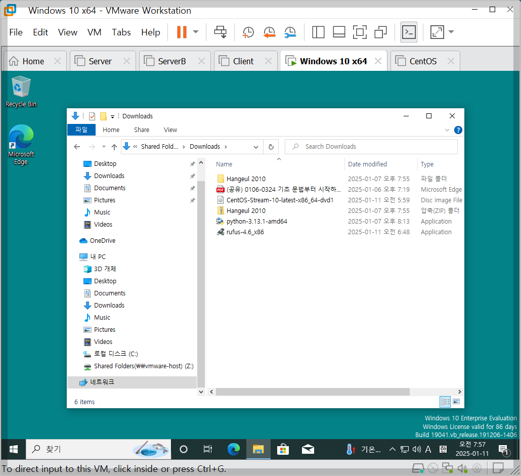 - VMware Tools 설치 후 호스트와 가상 머신 간의 공유 폴더(Shared Folders) 기능을 사용할 수 있습니다.