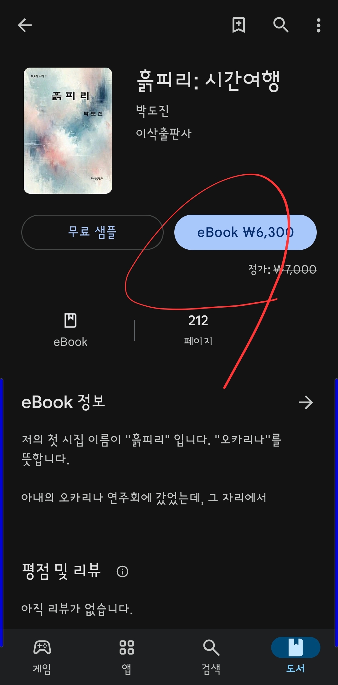 구글 플레이스토어에서 박도진 시집 '흙피리' 구입하기