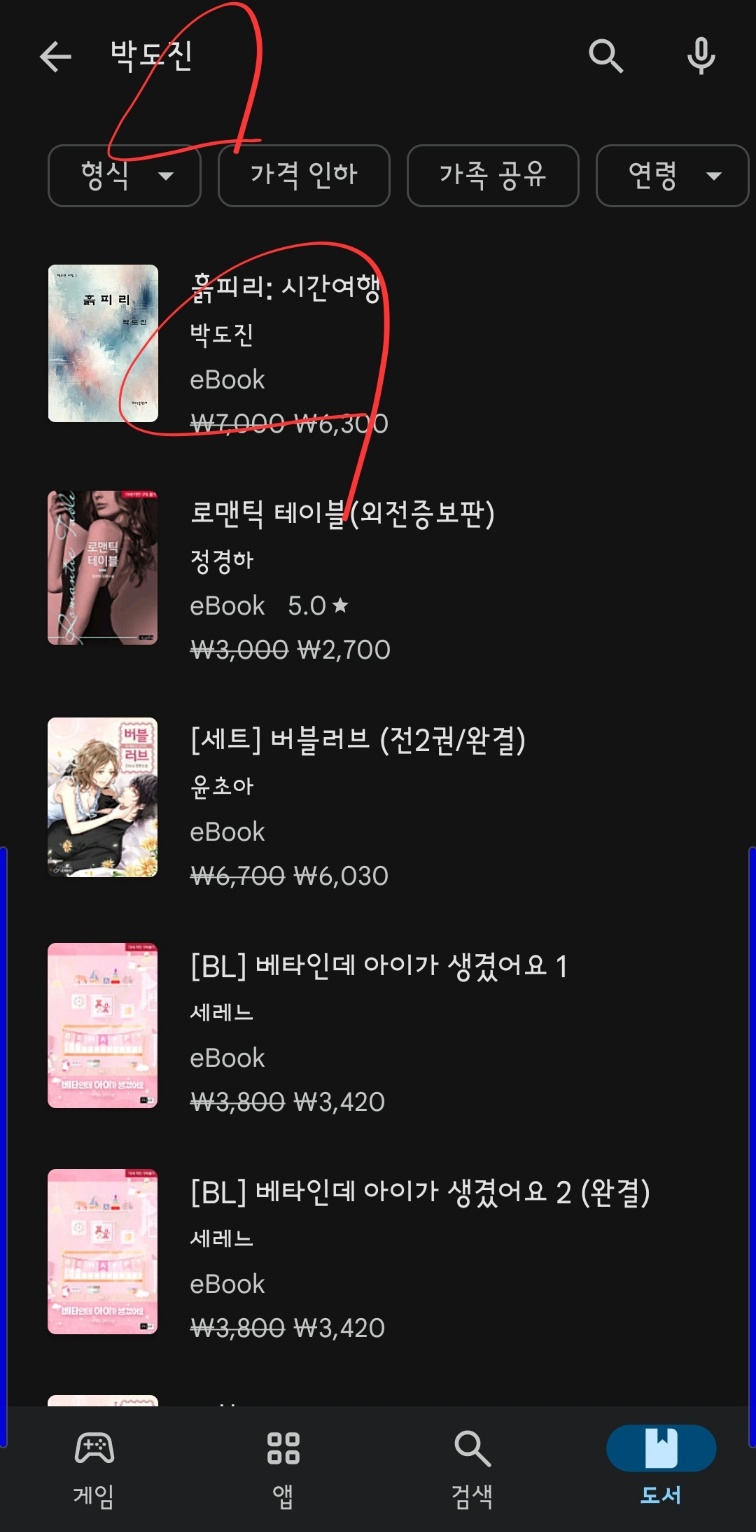 'ebook 6,300'을 클릭하고 진행합니다. 구입이 완료되면 구글 독서 앱인 'Google Play 북'에서 읽을 수 있습니다. 'Play 북'은 '플레이스토어'의 '앱'을 통해 검색하면 설치할 수 있습니다.