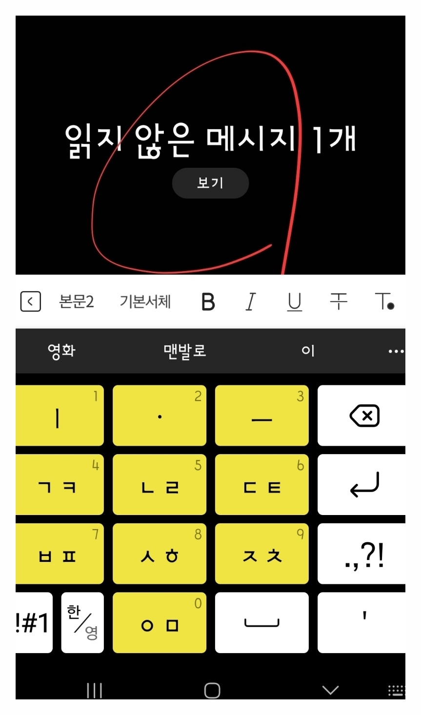 스마트폰에서 "읽지 않은 메시지" 알림이 표시될 때
