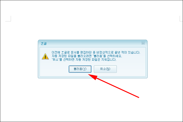한컴오피스에서 비정상 종료 후 파일이 열리지 않는 경우