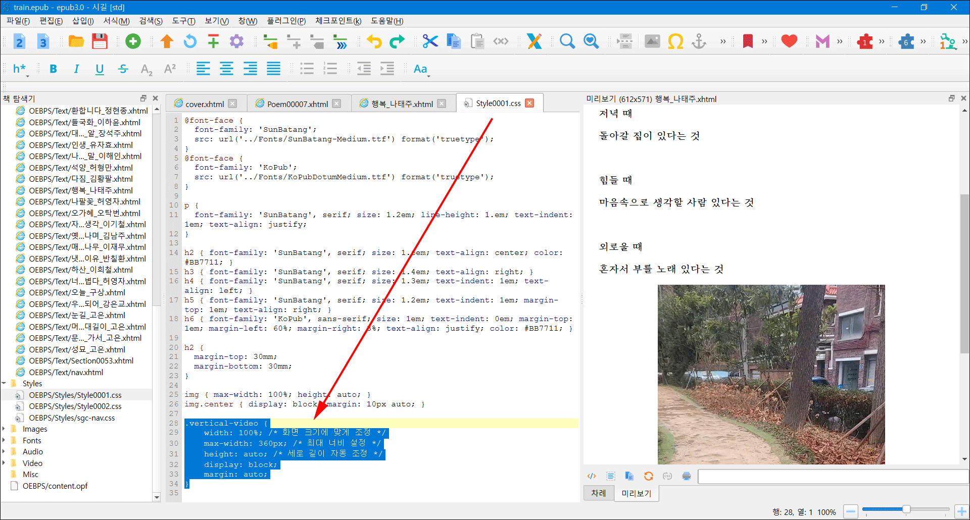 - EPUB 뷰어는 주로 MP4 (H.264) 포맷을 지원하므로, 비디오가 MP4 형식인지 확인하세요.