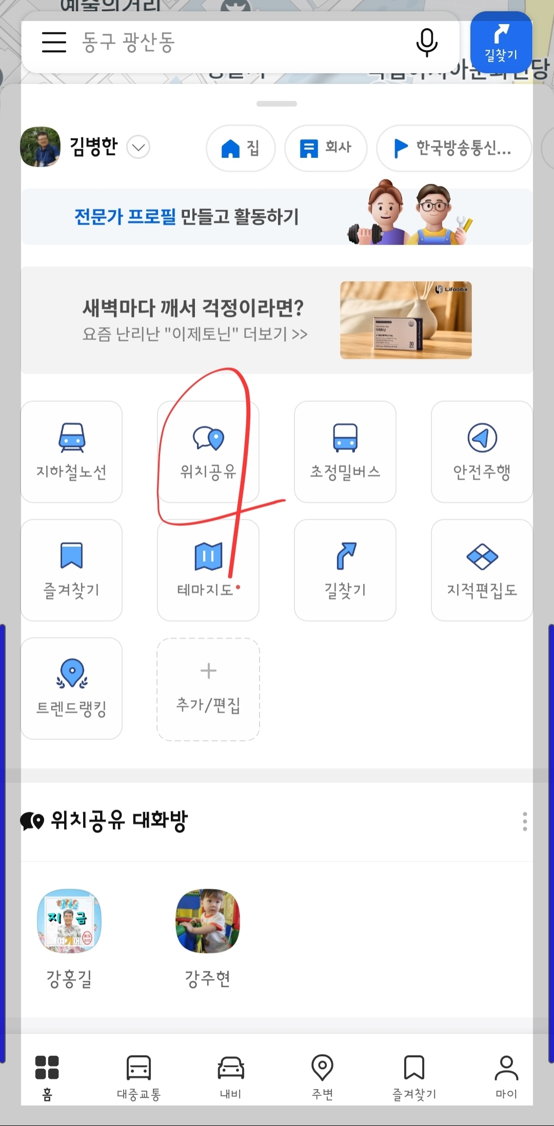 카카오톡 위치 공유 기능