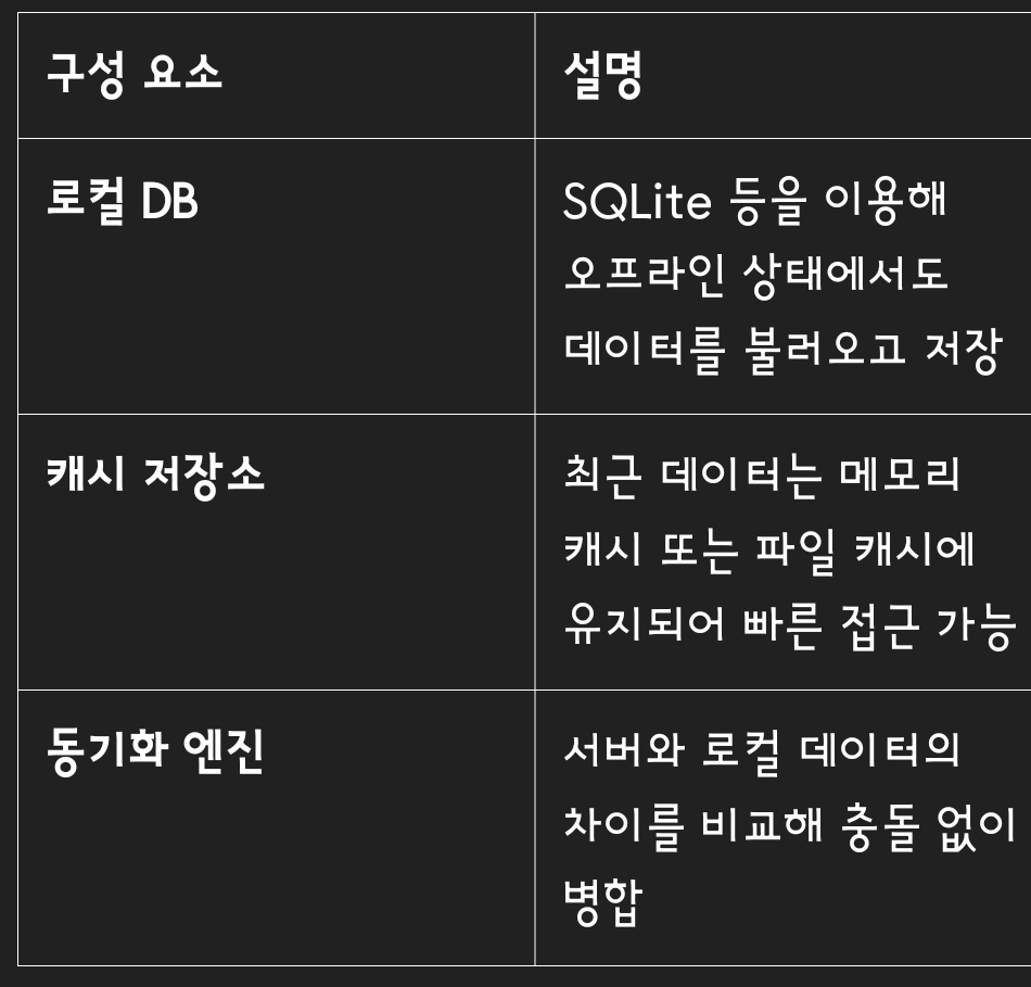 데이터 안정성: 임시로라도 내 폰 안에 저장되기 때문에, 갑작스러운 네트워크 오류에도 안심