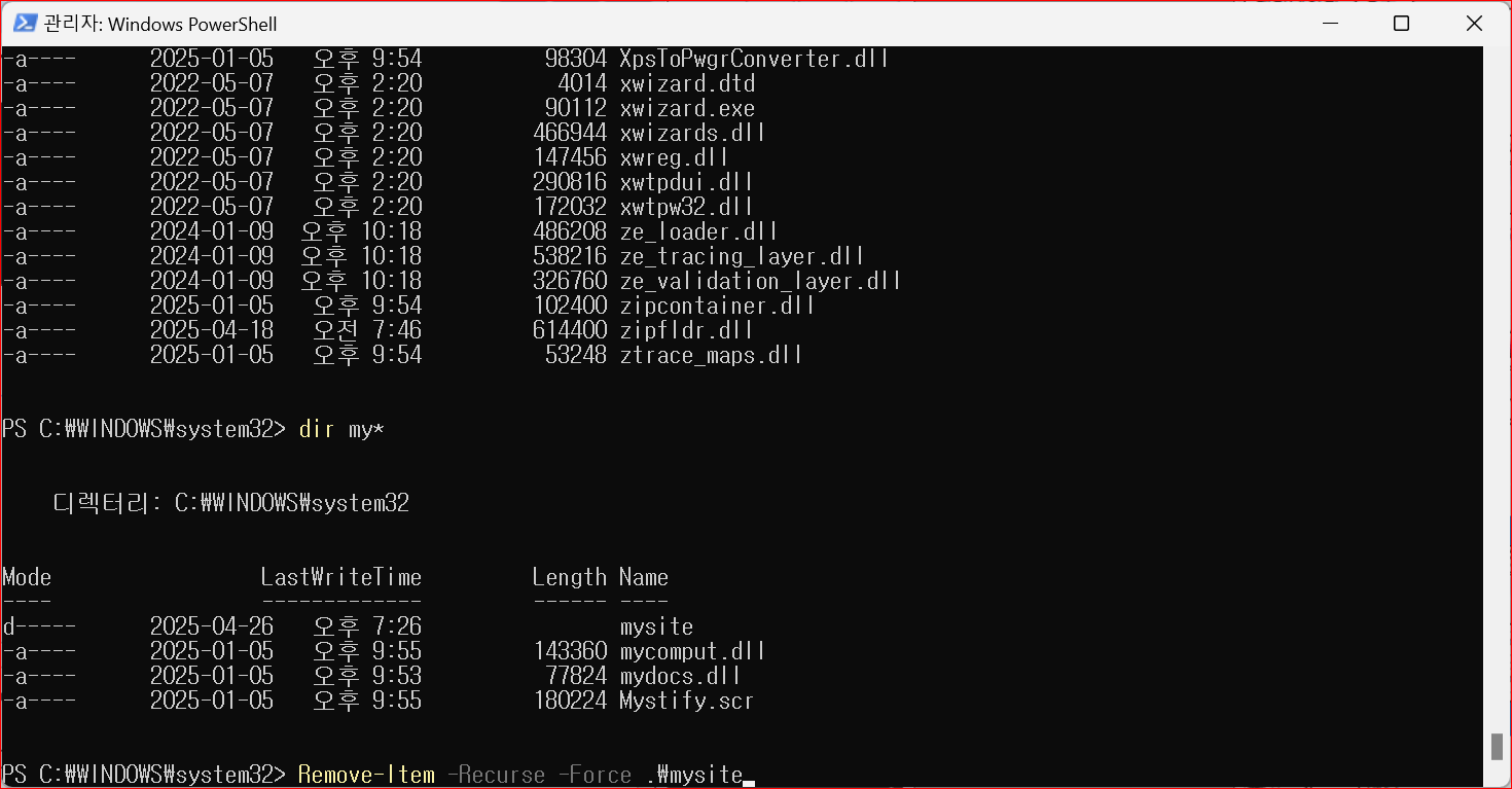 ✅ 방법 1: PowerShell 또는 CMD에서 삭제
