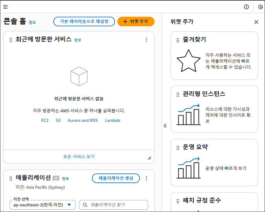 - 처음 사용하는 경우: 서울 리전(ap-northeast-2)을 선택하는 것이 가장 무난합니다.