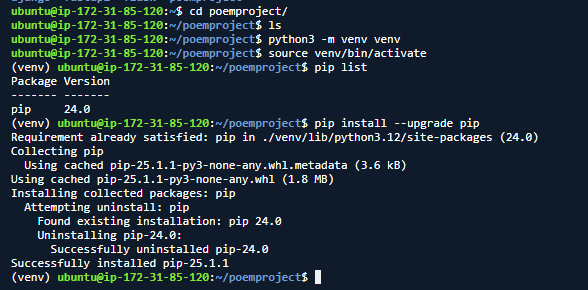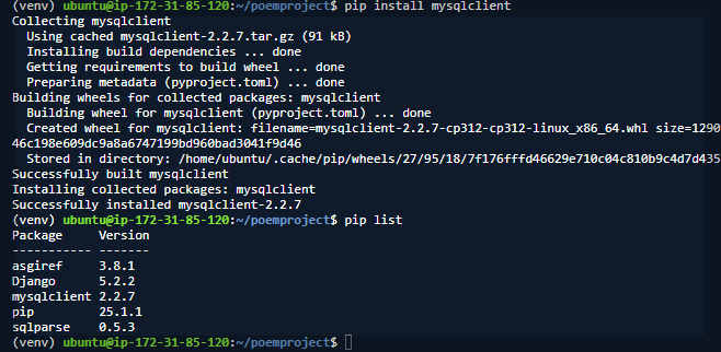 sudo apt install python3 python3-pip python3-venv default-mysql-client libmysqlclient-dev -y