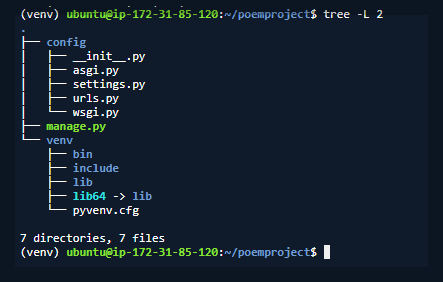 이제 config/settings.py, manage.py, config/wsgi.py 등이 생성됩니다.