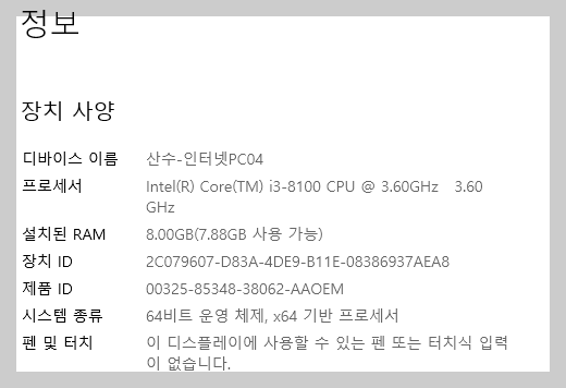 - 시스템 → 정보(About)