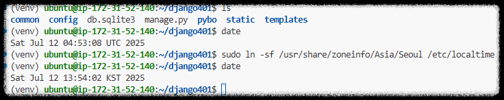 이제 서버 시간이 한국 시간으로 정상 적용된 것을 확인할 수 있습니다.