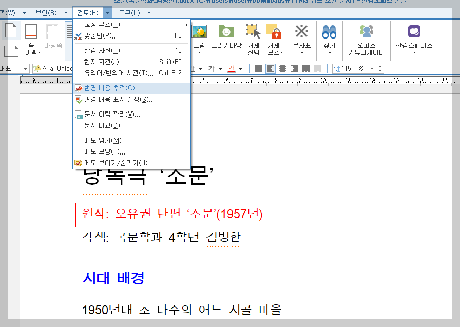 바로 이럴 때 유용한 기능이 **아래한글의 ‘변경 추적 기능’**입니다.