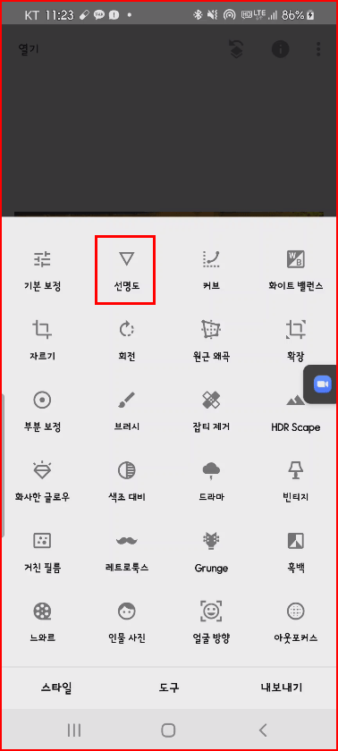 그런데 이게 가관이 아닙니다. 터치하고 사진을 선택했더니 그 기능이 장난이 아닙니다. 언뜻 봐서는 지나치기 쉬운 메뉴인데요.