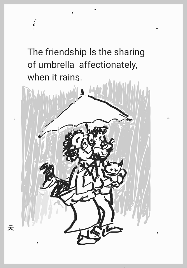 카카오의 AI 모델인 '카나나-키네마'를 기반으로 하며, 사진 속 인물의 표정을 바꾸거나 움직임을 추가하는 등 15종의 템플릿을 제공합니다. 박 선배님이 올린 카툰 한 컷을 카카오톡 영상 만들기로 1분 이내에 비가 오면서 뒤에 업힌 강아지가 고개를 끄덕거리는 영상이 만들어지는군요.