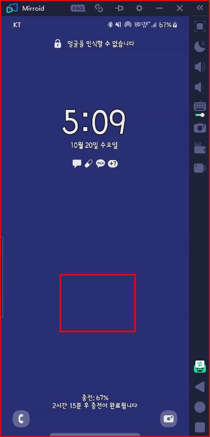 네모 친 부분에 지문 인증하라는 표식이 나타나는데 미러링에서는 보안상 그 이미지는 나타나지 않습니다. 또한 주의할 것은 단축키를 적용할 때 미러로이드가 선택된 상태에서 적용해야 한다는 것입니다. 만약 미러로이드가 선택되지 않은 상태에서 [Ctrl+P]를 누르면 [인쇄]할 거냐는 메시지와 창이 뜨게 됩니다.